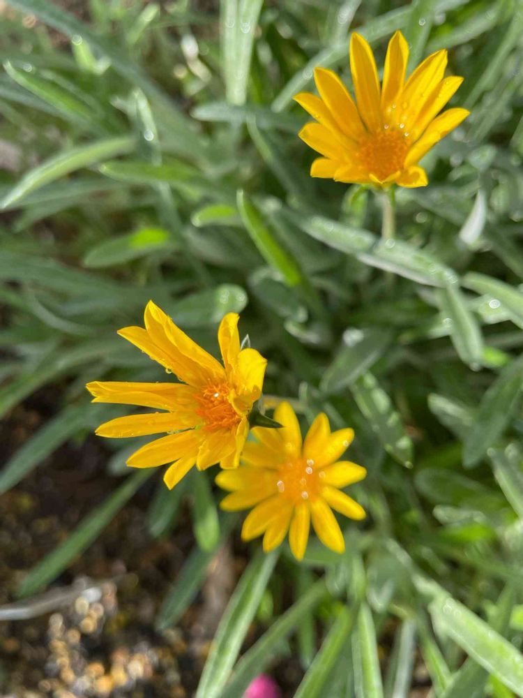 宿根ガザニアも久しぶりに開花!あたりをうかがいながら、みずみずしい花びらをそっと開いて。