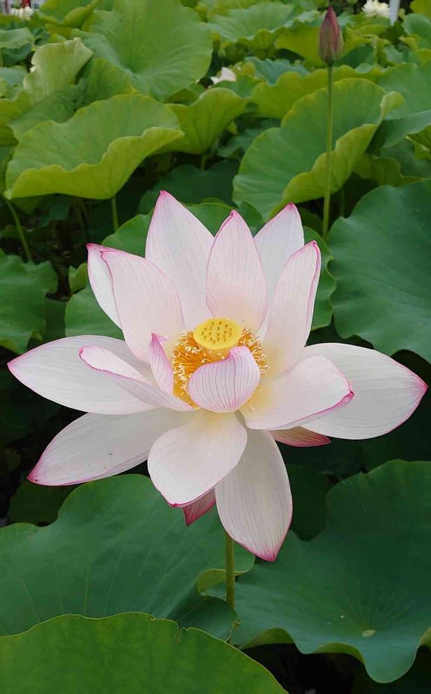 こちらは嘉祥蓮、白地の花弁の先に紫紅色の爪紅✨