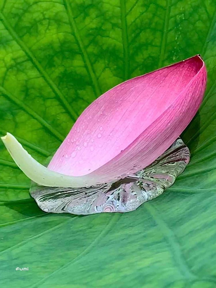 蓮の茎から空が漏れていて、花びらが揺らぎ出すだけでなく、雨水が揺れるのも綺麗でした