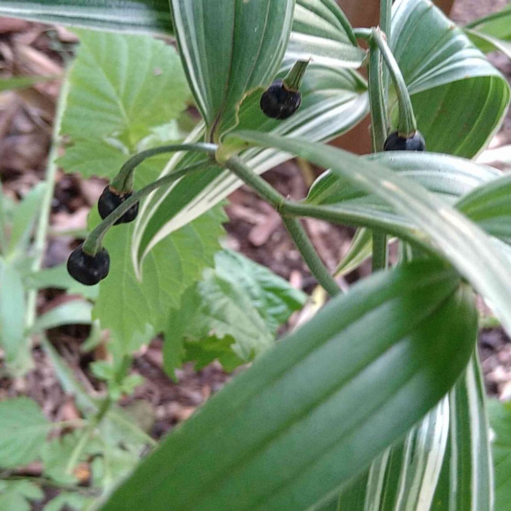 花友さんから頂いた斑入りのホウチャクソウの黒い実が綺麗です。