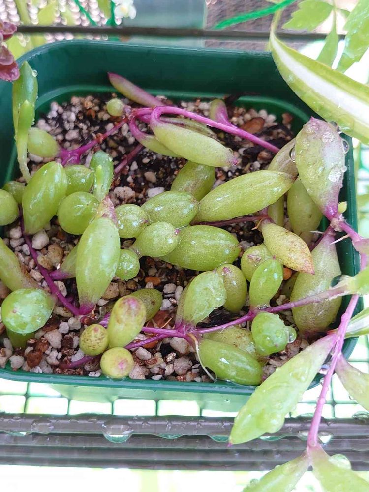 こんにちは☺️🌱ホントにマスカットみたいで美味しそうに見えてきました😆🌱ルビネさんお水あげるとプクプクになって可愛いですよね🌱✨この子は雨ざらしなので雨でプクプクなんですけどね😆挿し芽でどんどん増えるので知人にあげて(押し付けて)ます🤣🤣🤣🌱