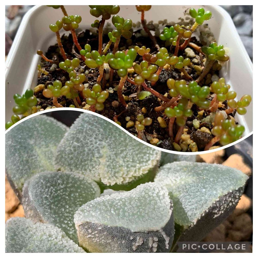 下・ハオルチアの氷みたいで涼しげ系🧊 このまま綺麗な状態維持できるといいけど…。焦がしたらどうなるかな…?やっぱり茶色?😱 部屋に置こうかな…。