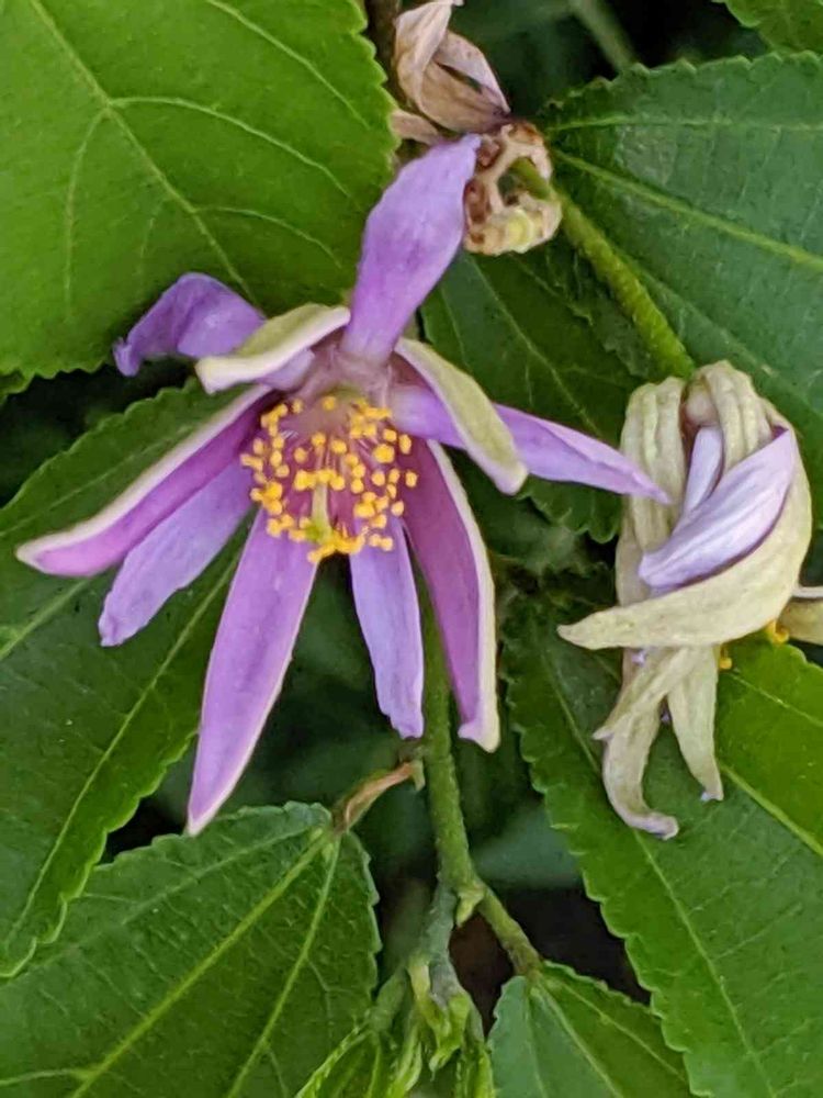 雨がやんでいる間に出先でスイレンボクの花にであいました。