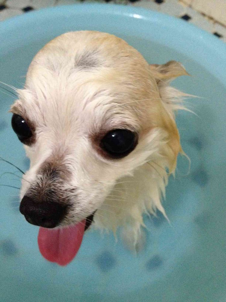 @ダイヤモンドリリーさんちのわんこがパックしてたのを見てうちの子もシャンプーしてあげました〜