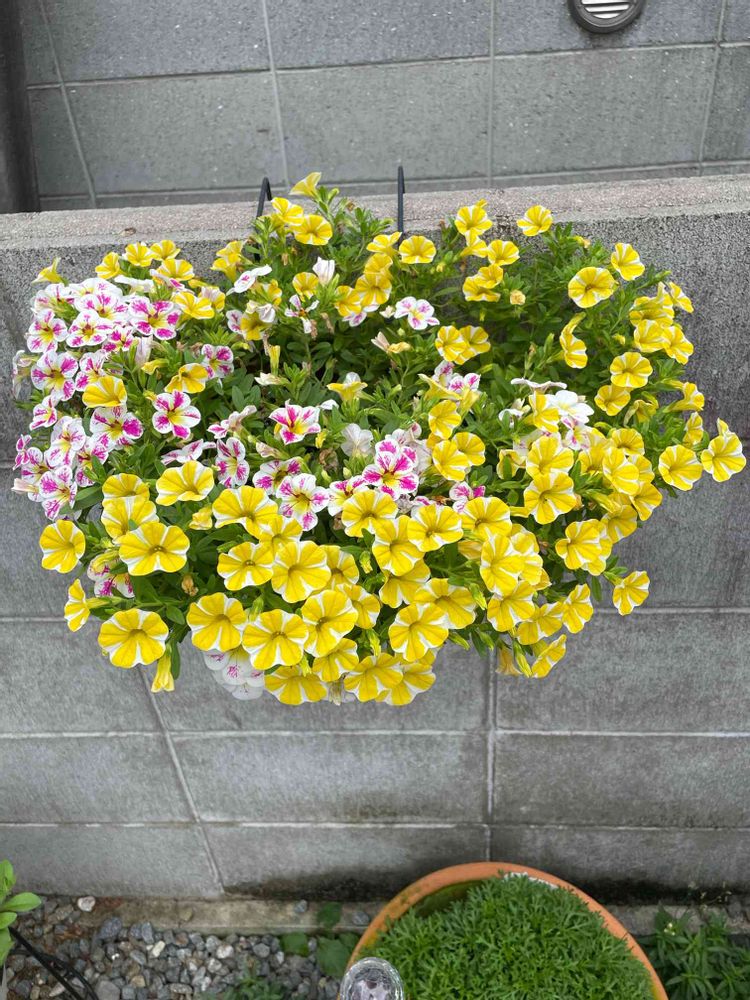 こんにちは😃昨日までの大雨でお花もぐちゃぐちゃです🥺撮れる写真がないのでこの前撮った写真を載せます😅レモンスライスとホーリーカウの寄せ植えです😊けど、レモンスライスの方が強くてホーリーカウちゃんがあまり咲いてない😅💦
