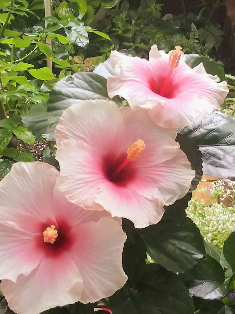 昨日手前のお花が双子ちゃんで咲いて、今日は奥の1つが咲いて、美人三姉妹に🌺