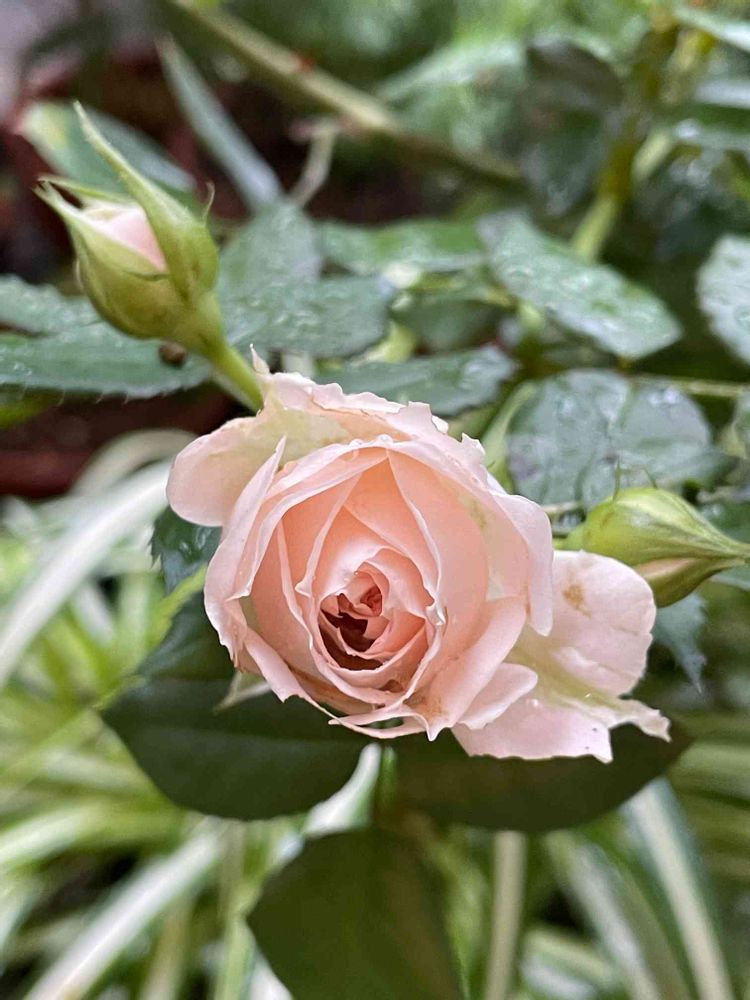 雨を避けるように軒下の奥に枝を伸ばして咲いてきたパシュミナ💓