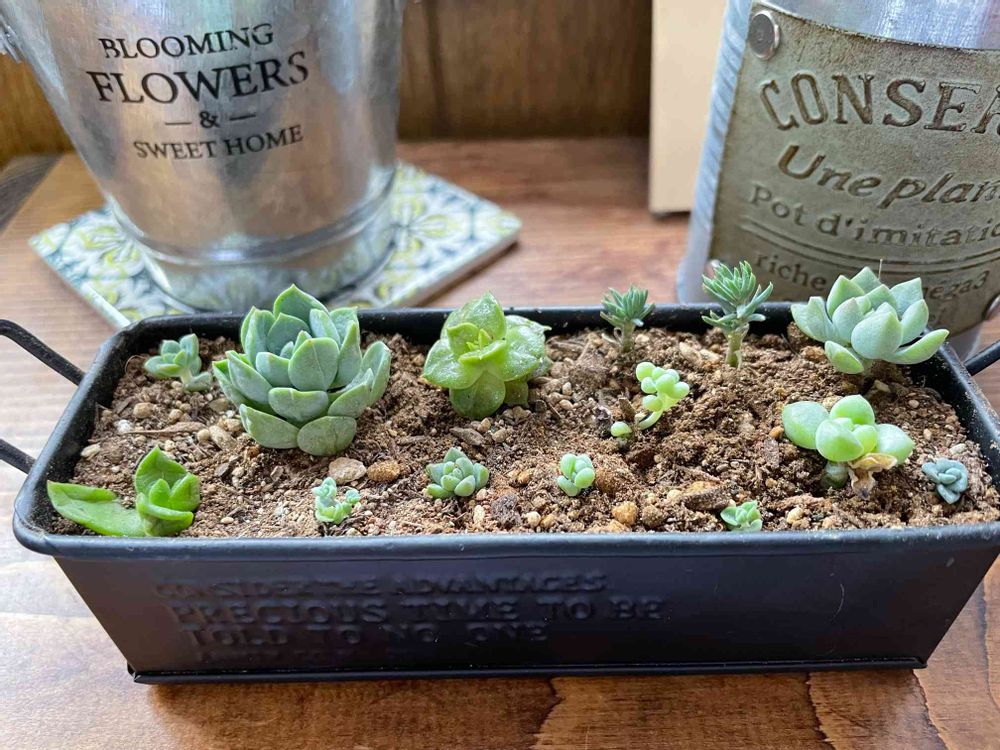 葉挿しで出た小さな芽をチョンチョンと集めて。大きくなると嬉しいです!