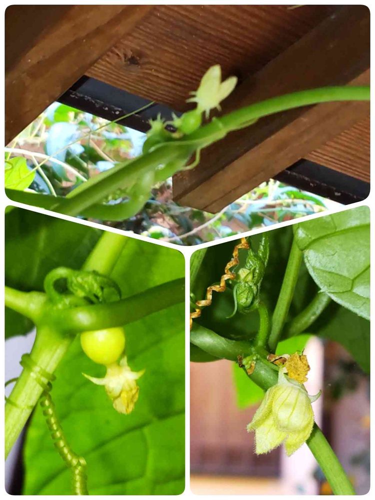 今年初めて挑戦する沖縄スズメウリ。隣に植えてあるゴーヤと同じように摘心してしまいました。
