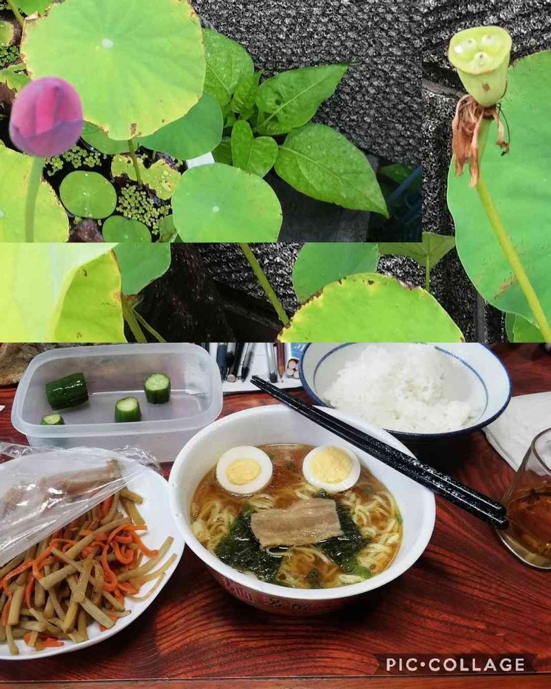 今日のお花 終わったハスの花と これから咲く蕾♪