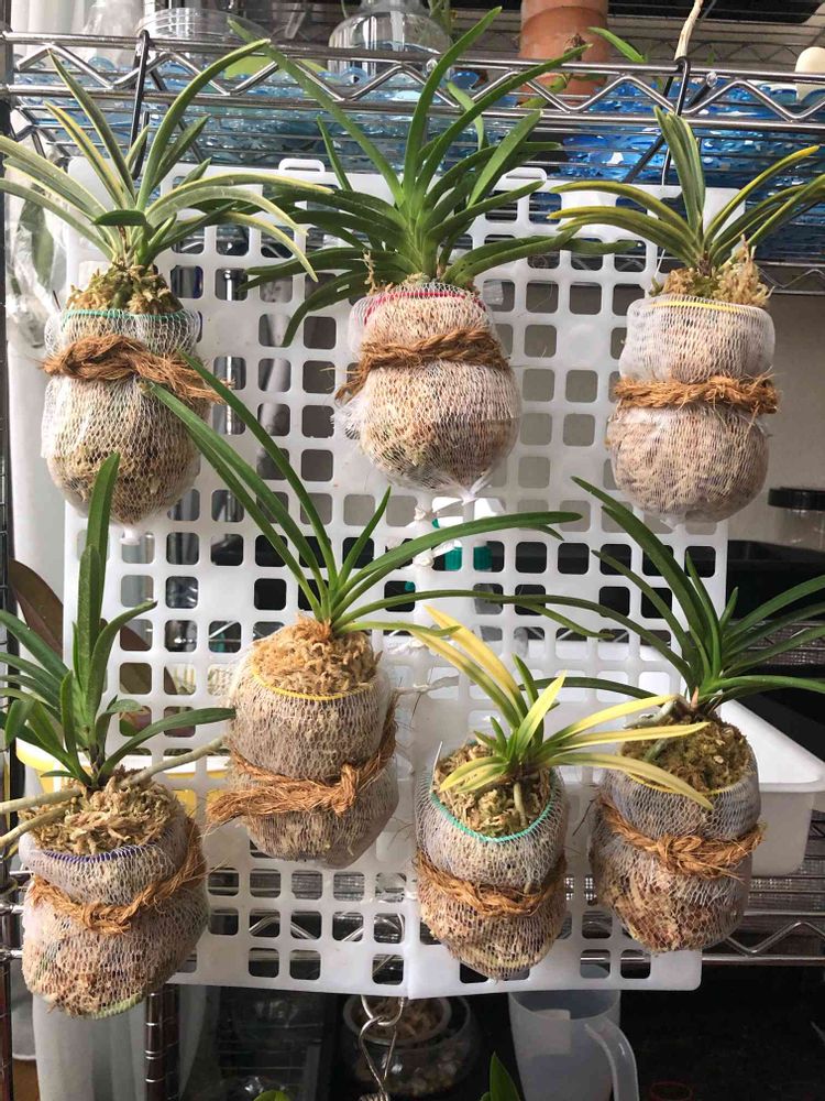髪の毛キャッチネットに水苔植の蘭を入れると水苔が散らからなくてとても良い~新たな発見❣️