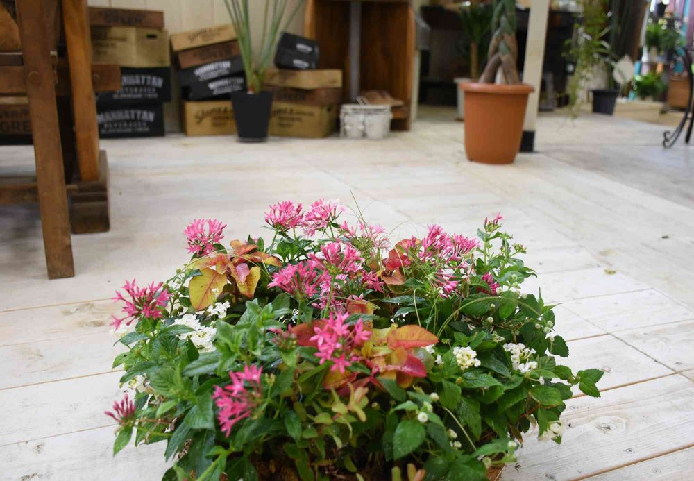 ペンタスとハゲイトウ、ランタナのリース