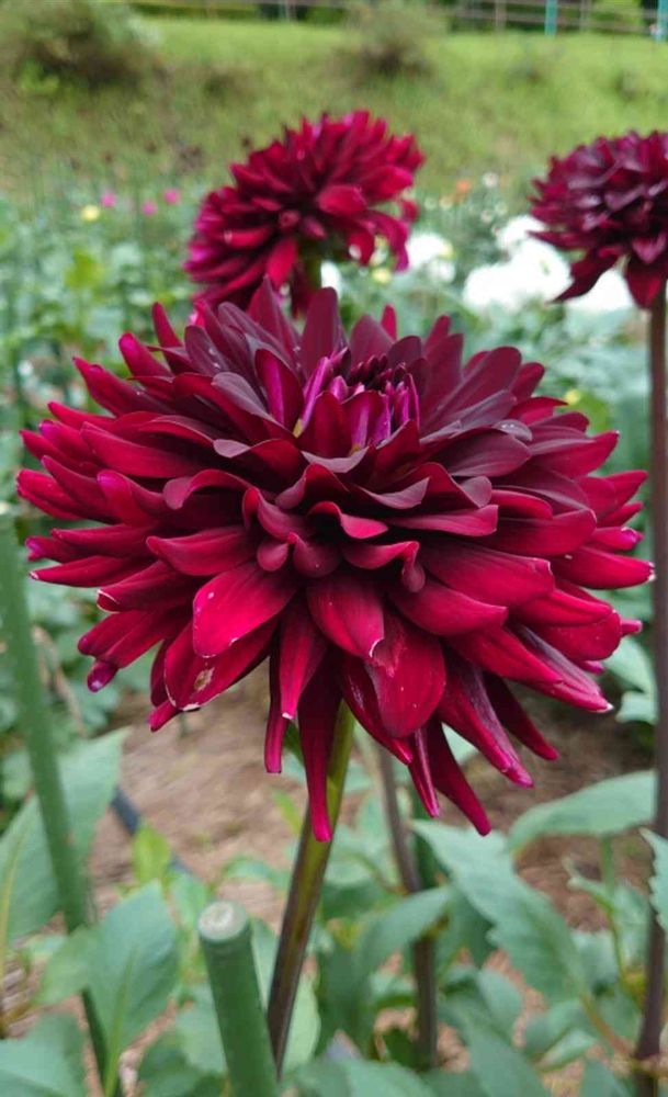 6月には、ダリアの人気に火を付けたといわれた黒蝶が咲いていて、黒が入った赤の詩想というダリアも咲いていました。似ていますね👍