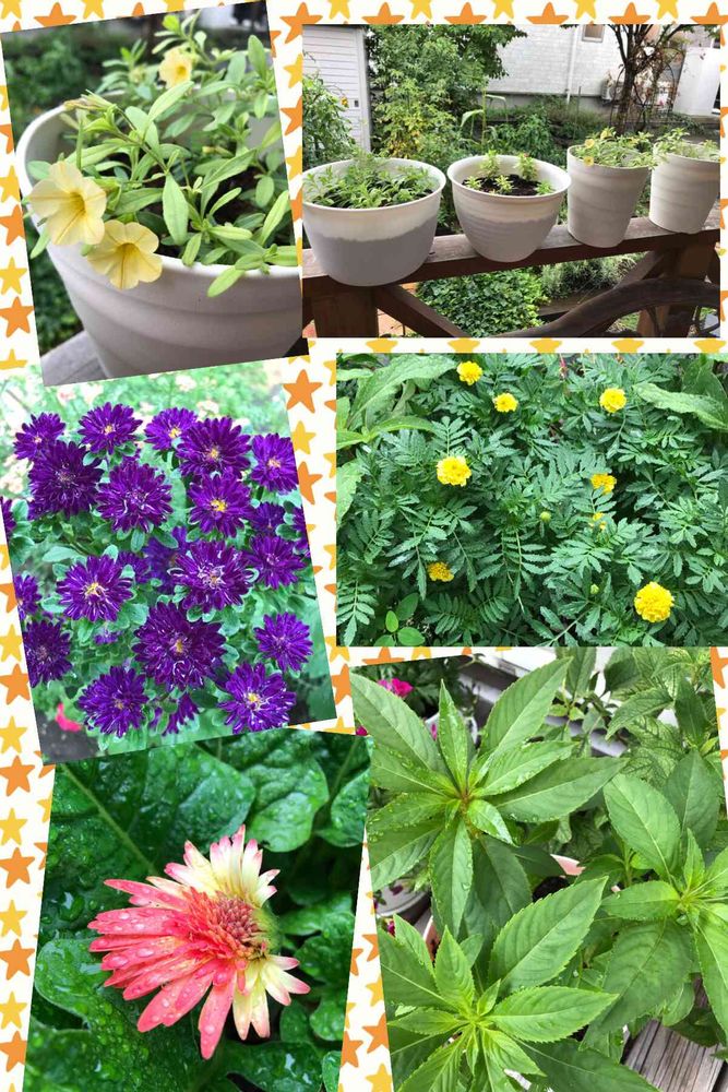 👈紫アスターとダイソーマリーゴールド咲いています🤗
