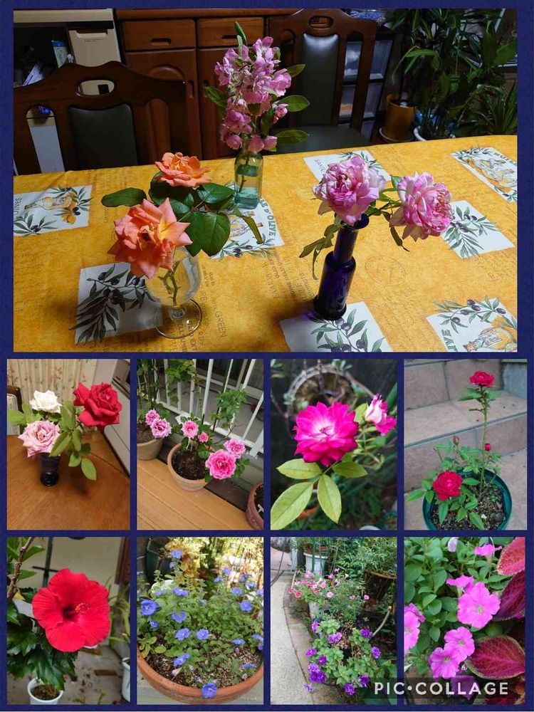 投稿写真は、今日の我が家の花の写真。上段のバラは、アンジェラ、マネ、ブラスバンド。