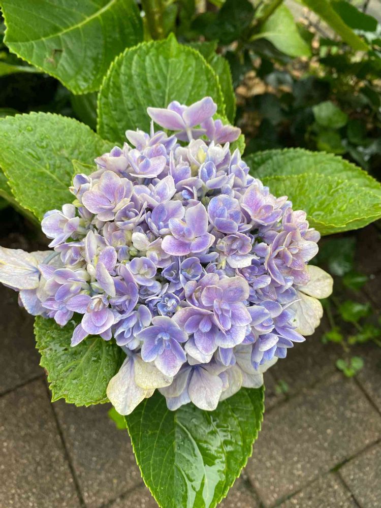 お店だと青かピンクが売ってると思いますが、こちらは青いアジサイの植えてある土に石灰撒いて、ピンク寄りの紫になりました😊