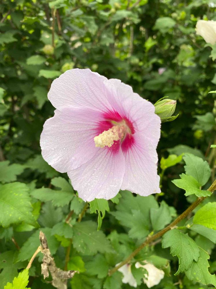 ムクゲの生垣にポツンポツンと咲いてます😄