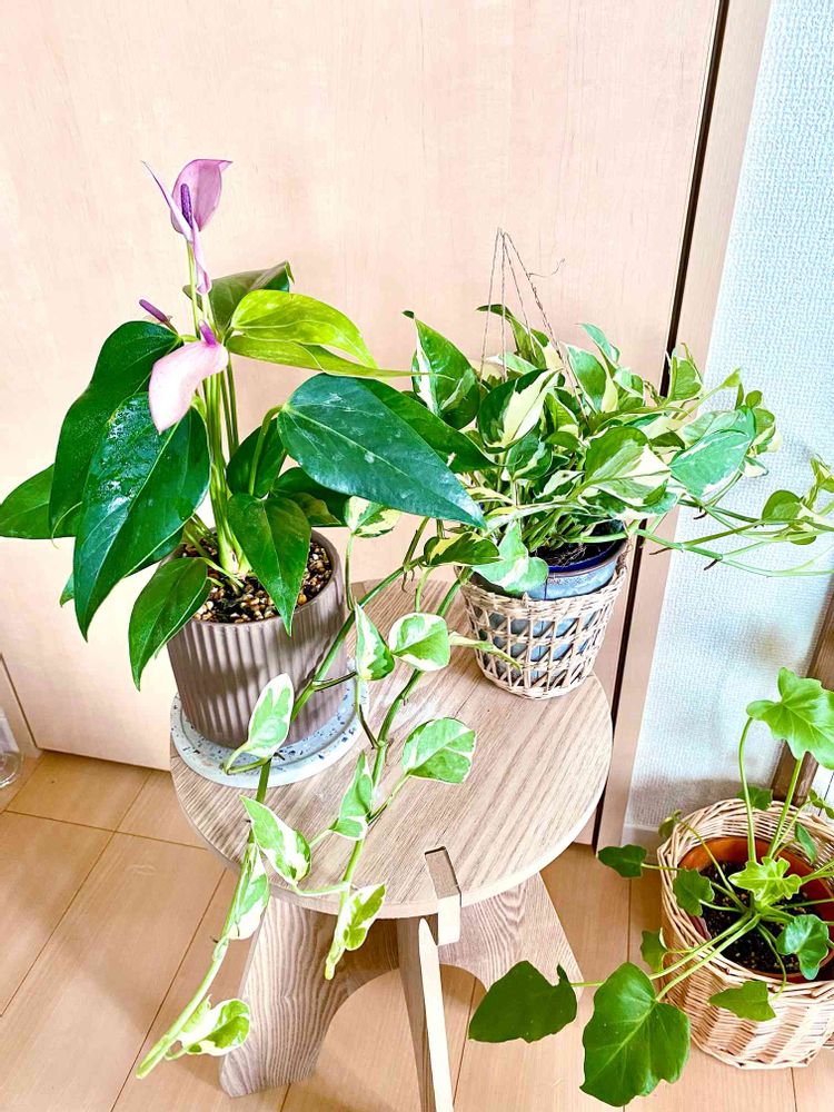 先週から仲間入りしたポトス・エンジョイとアンスリウム・ジズー🪴