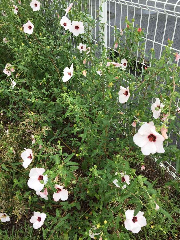 駐車場空き地に咲くヤノネポンテンカ(アオイ科)
