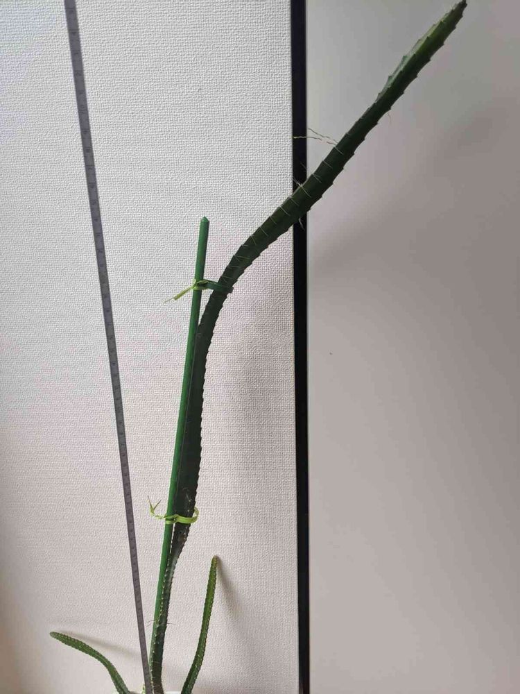 このドラゴンフルーツはもう摘心して高さ50cmくらいになったので、これからどう育つのか実験中