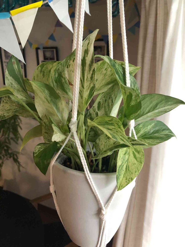1年くらい前に小さなポット苗でお迎えしたポトス・マーブルクイーン。