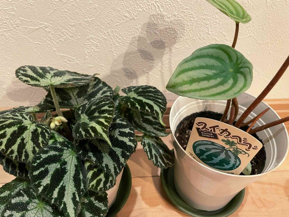 先日購入したスイカぺぺが秒で根腐れしたのでリベンジ!そして初ベゴニア!シルバージュエルとか中々良い感じの葉です。