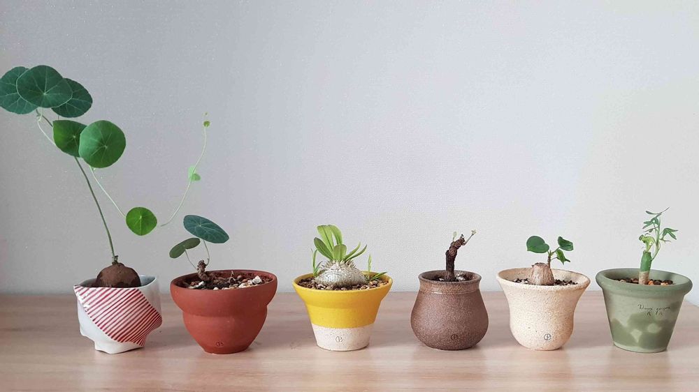 手のひらサイズの小さいの子達にみずやり。数日前に購入したアデニアベネナータの葉が落ちだした😖環境があってないんやろね。ごめんね。