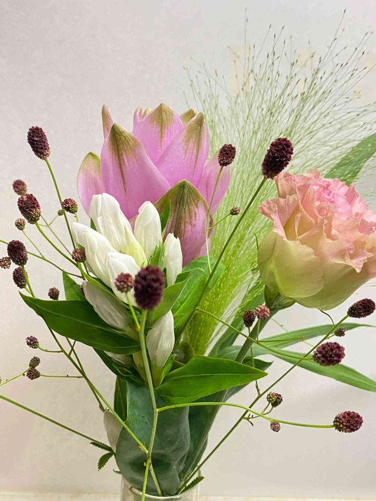 クルクマ、リンドウ、トルコ桔梗?