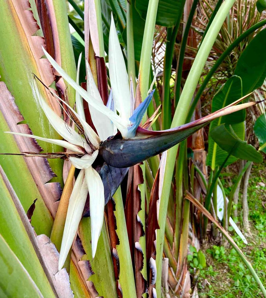 このオーガスタの花を初めて見たのはポルトガルでした。大きな独特な形と青黒い💙クチバシの部分が素敵でしたが…カイガラムシがビッシリ付いていてちょっと引きました😂😂