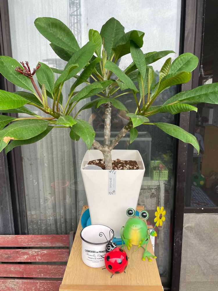 プルメリアの全体、結構大きいですねえ😲うちの子はあまり葉っぱも増えてる気がしません。花芽も大きい〜っ‼️