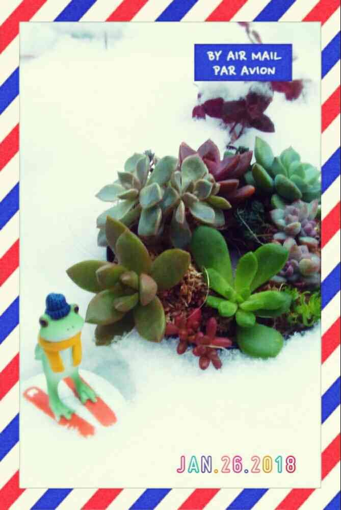 多肉リースも雪の上に置かれて寒くてビックリ!してたかなヽ(^.^;
