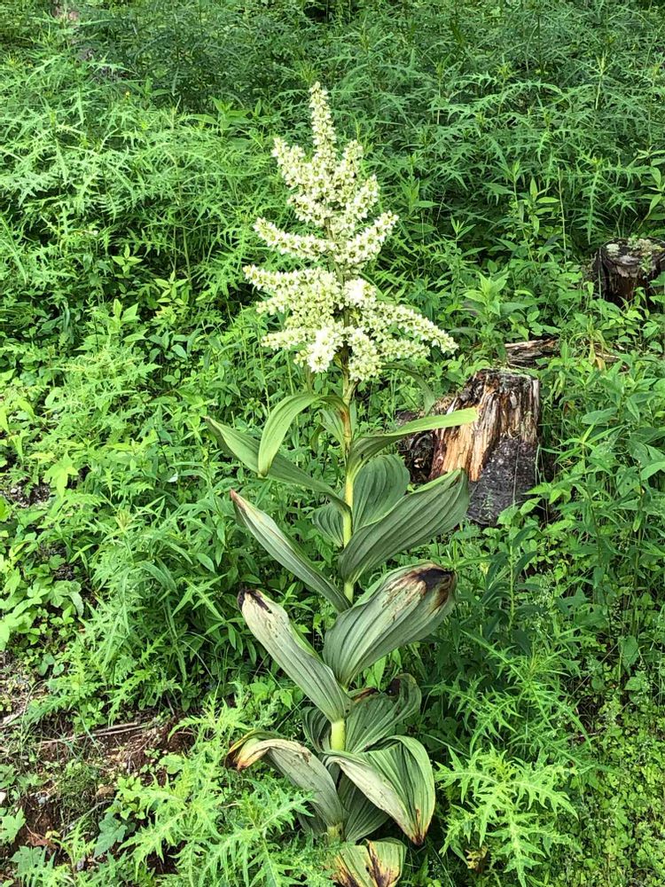 山頂駅のロックガーデン周辺に、たくましく大きな株を伸ばし、沢山の白っぽい花を咲かす、「バイケイソウ」が、盛りを迎えていました❣️