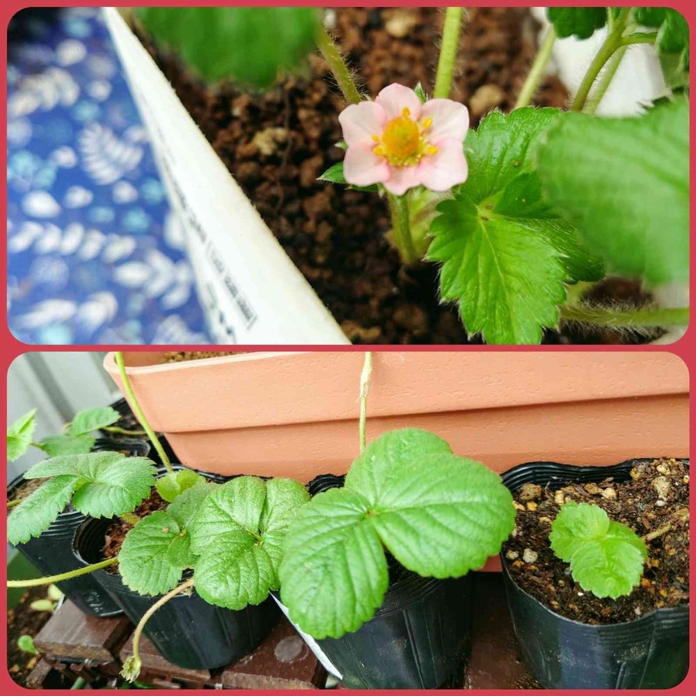 雨続きで気温が下がっているからか、イチゴに花が咲きました🍓我が家は四季なりなので、本来なら春秋に収穫で真夏は花も咲きません。