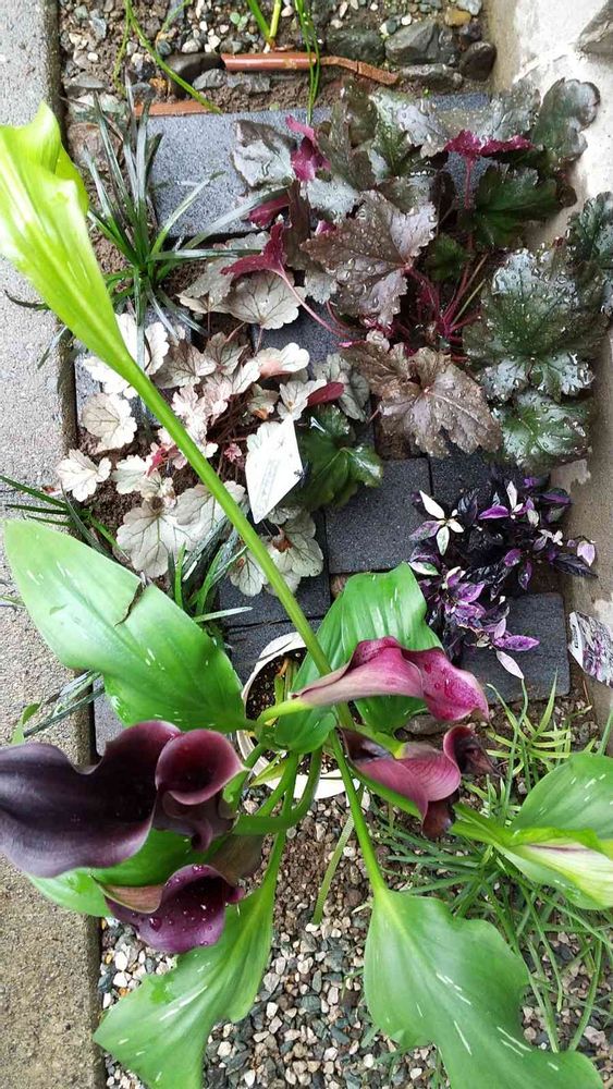 砂沙 (シャんシャん)さんの小さな庭,ヒューケラ、カラー、紫唐辛子,個性的の投稿画像