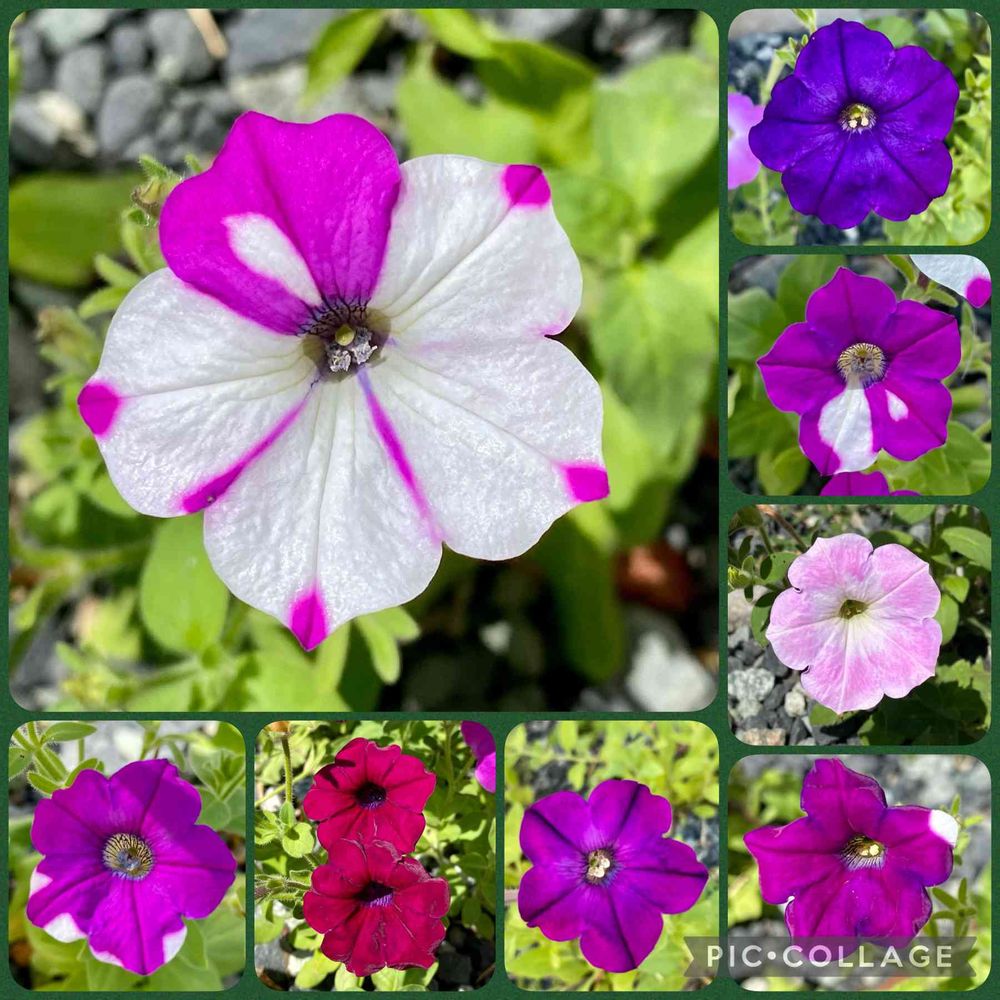 毎年こぼれ種で咲くのですが一部に色んな模様のペチュニアが咲く場所があります💦