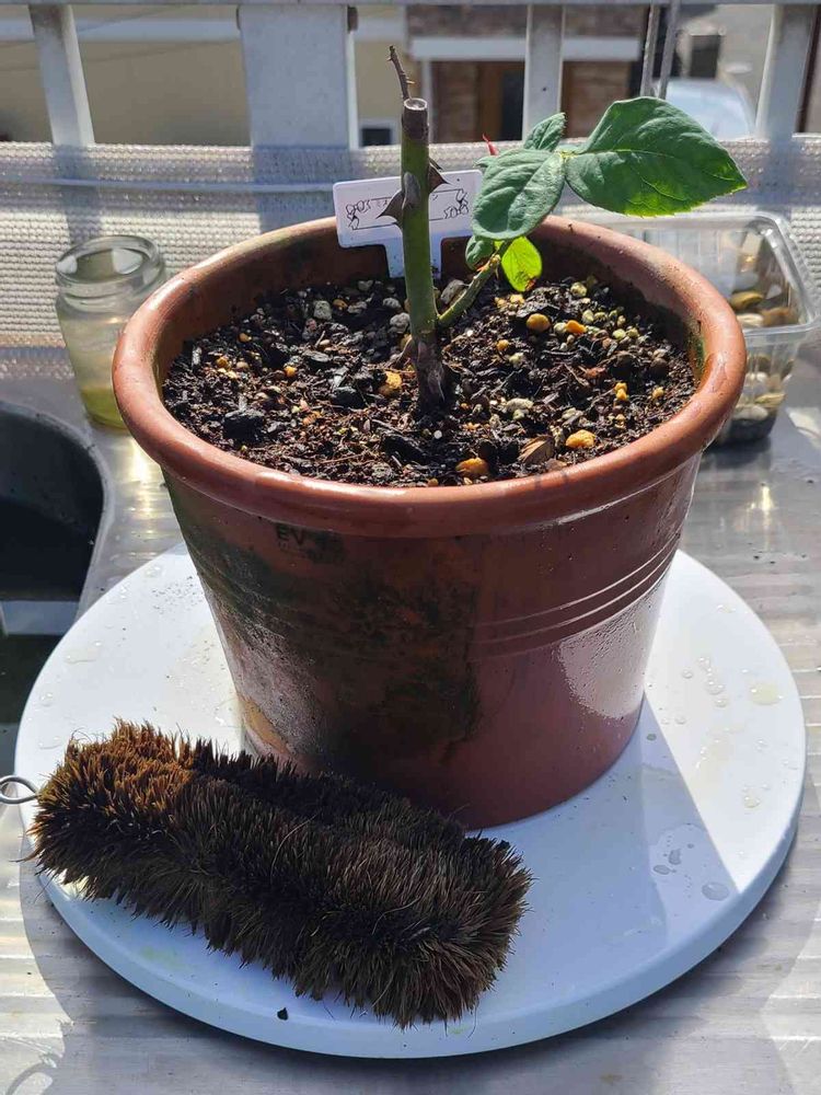 空っぽの鉢ならガシガシ洗えますが、植えてある鉢だとどうにも洗いづらい💦