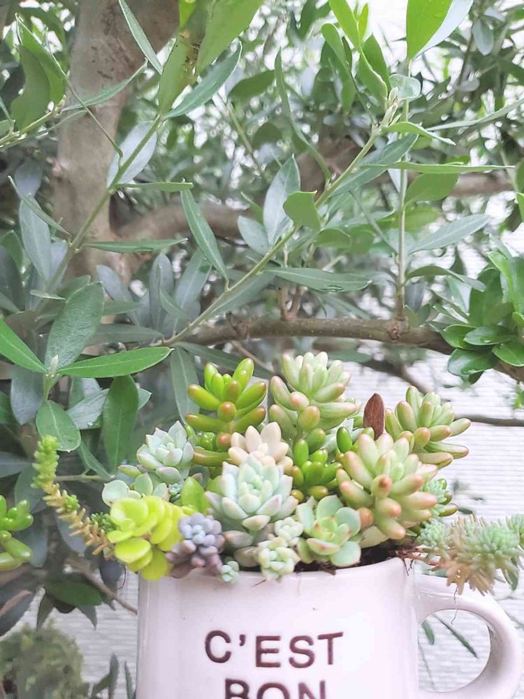 ここの場所のカップの寄せ植えさん達
