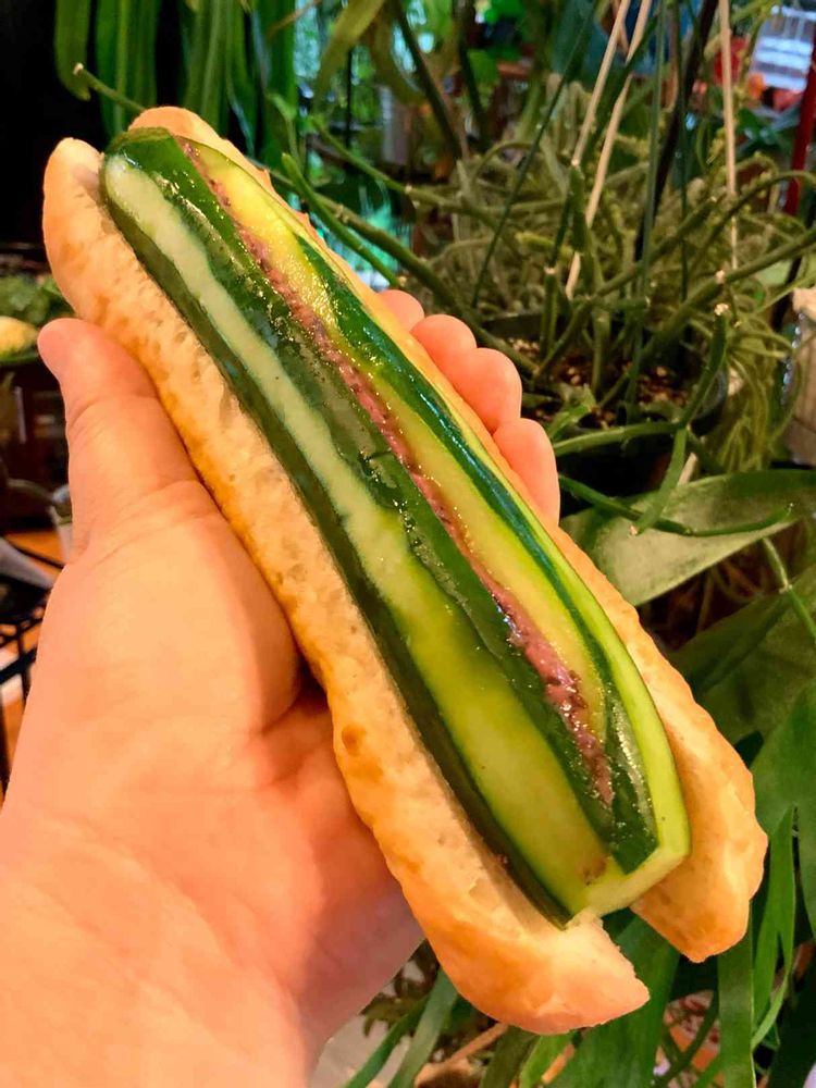 キュウリ🥒一本をパンに挟んでるのを初めて見ました。