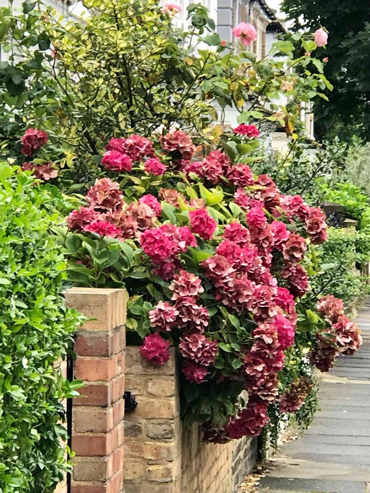 赤い紫陽花の咲くお家。もう終わりにかく色褪せ始めてます。うちの狭い庭の半分もないこの辺の家々だけど綺麗になってます。