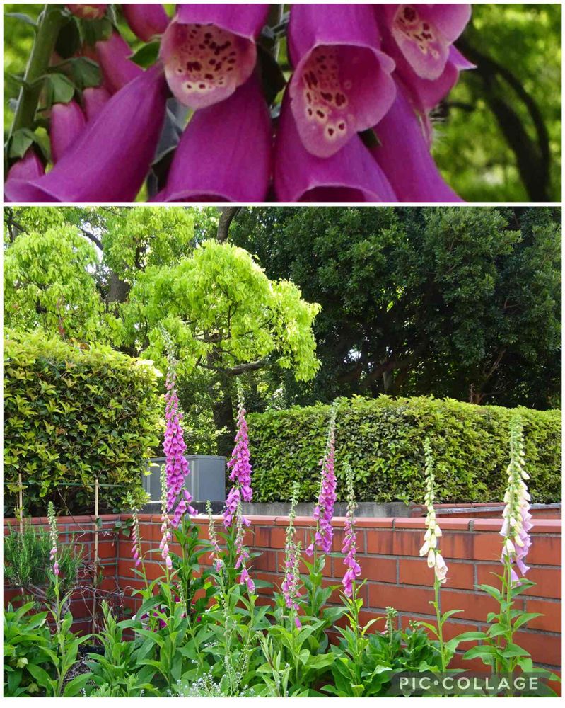 花壇の真ん中にジギタリス 💗…がいいなぁって思っていたけど、たくさん並ぶとより映えますね。