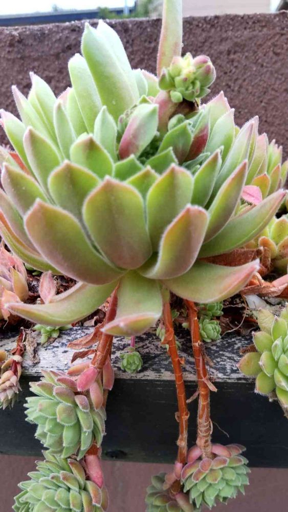 久しぶりに、センペルのチェックしたら、とんでもない所から花芽と、子株をつけているヤツがいたよ😱⁉️👀👀👀