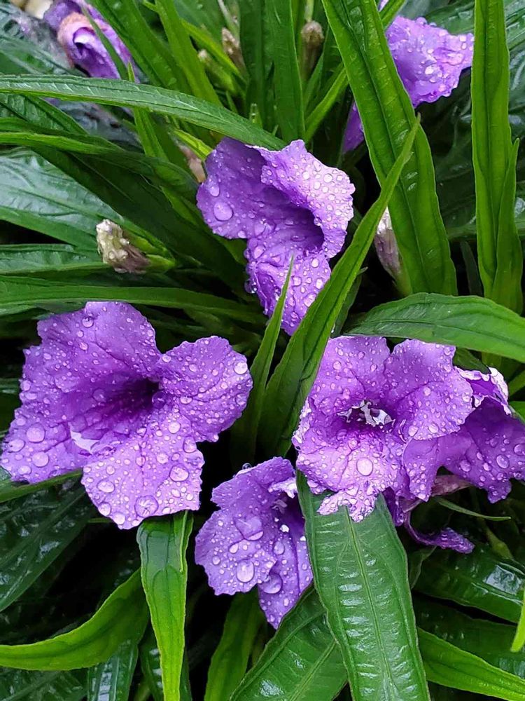 雨の中たくさん咲いていますね💜