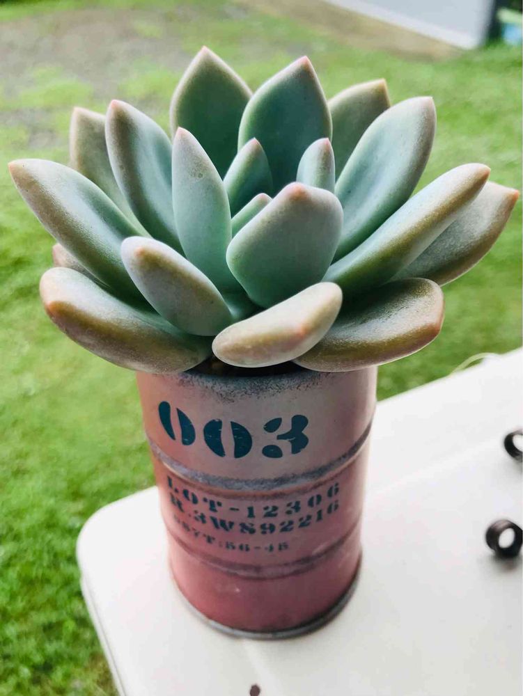 おチビさんがはみ出るほど大きくなったね〜🥰缶が色褪せるほど太陽浴びても元気👌