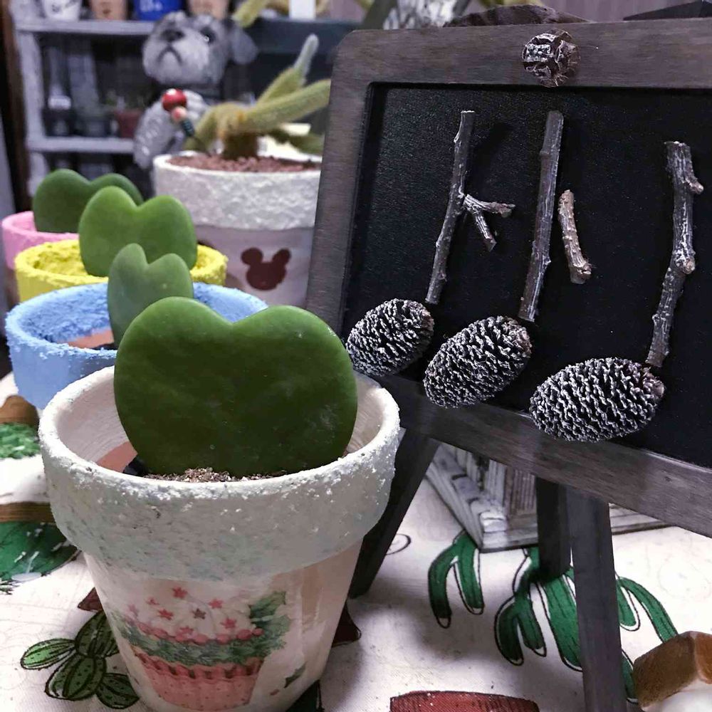 ハート💚も鉢もかわいいけど、横の🎶が気に入ってしまった😍💕小枝なところがまたいい💘