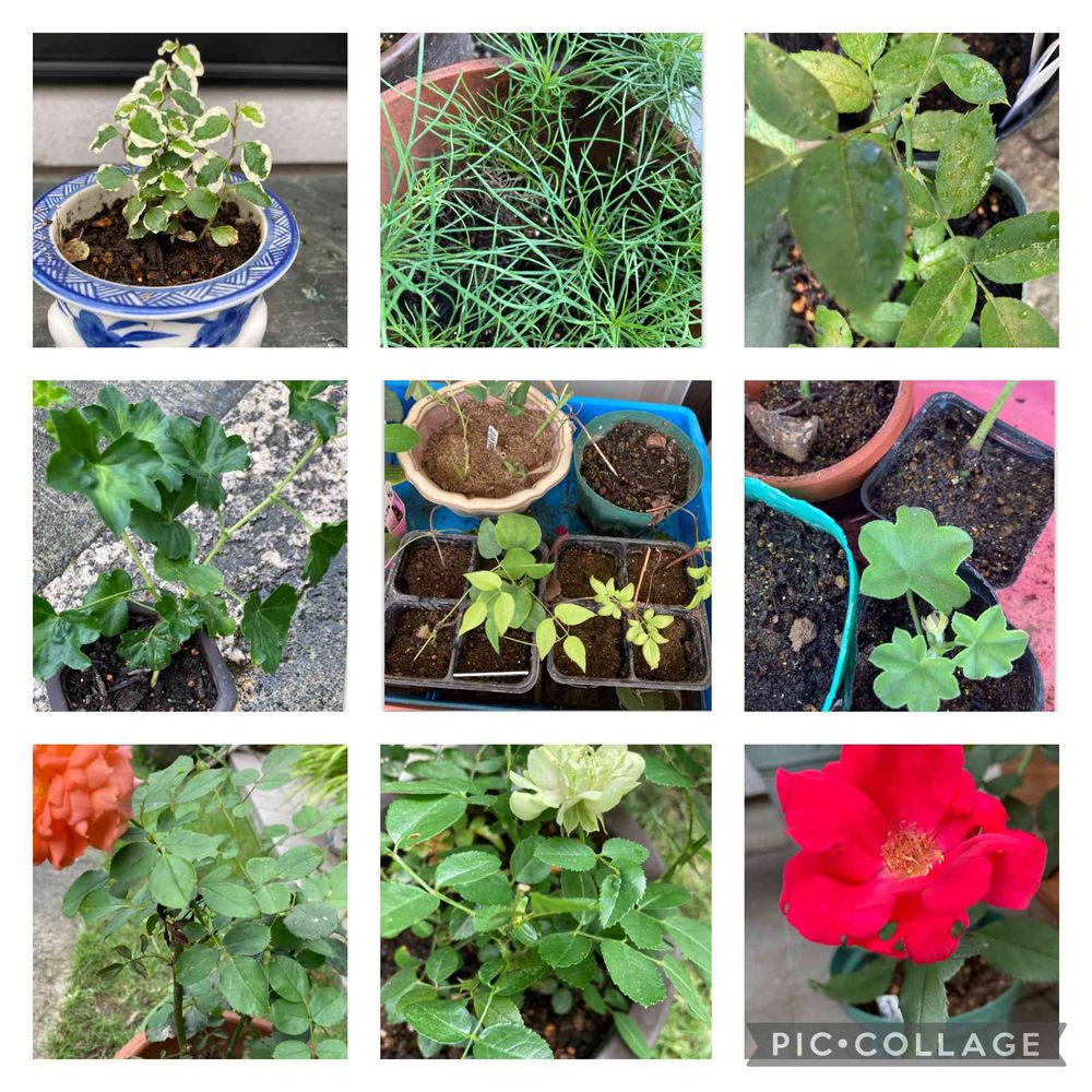 上の二段は今夏したもの。一度鉢増ししたものもあります。慌てて鉢増しして枯らすこともよくあるし、見落としている内に、根がぐるぐる🌀🌀になっていることも😱つまり、かなりいい加減な挿し木です💦