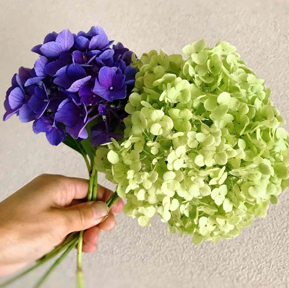 アナベル ライムグリーンになったのでそのままドライにしてみました🥰むらさき色のは半分ドライ💚
