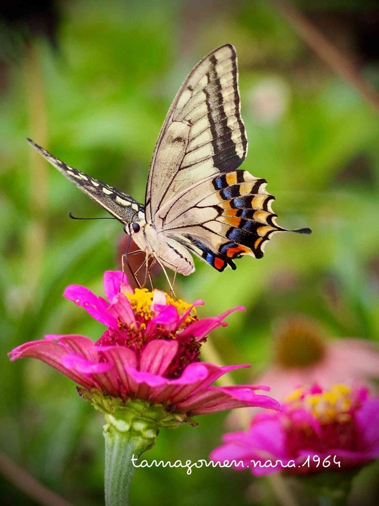 tamagomen. nara.1964さんのジニア☻,ヒャクニチソウ(百日草)☻,キアゲハ(黄鳳蝶・黄揚羽)☻の投稿画像