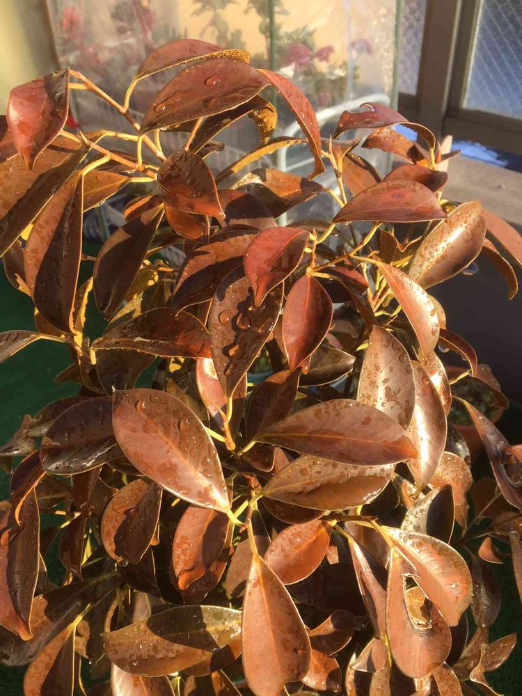 よくわかりませんが、ガジュマルの葉が紅くなってしまいました。