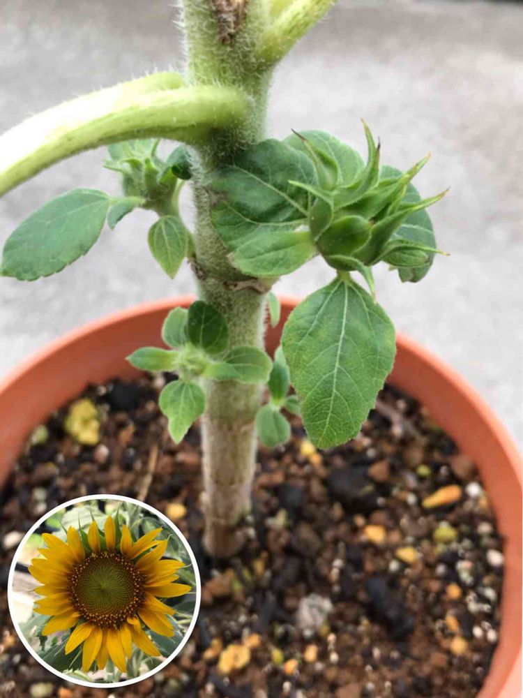 ひまわり🌻✂️したら、また蕾付けてくれました😄 初めてなので、咲いてくれたら嬉しいなぁ😌 蕾見てるだけで可愛いんです💕