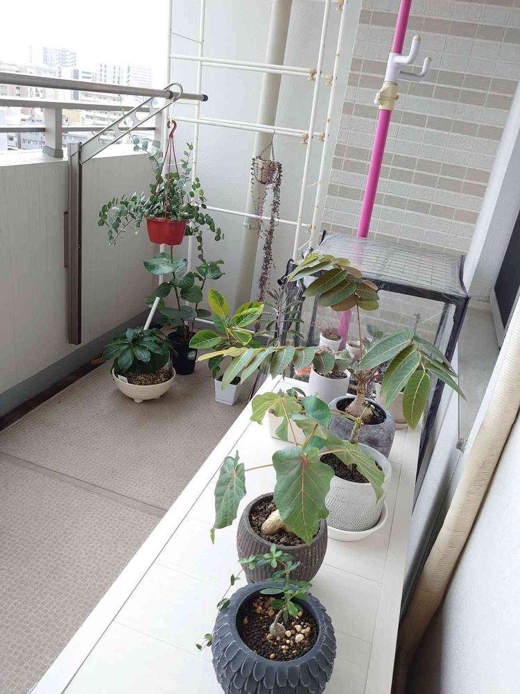 やっとやっと室外機カバーを購入しましたので、塊根さんたちを並べてみました🌱🌿